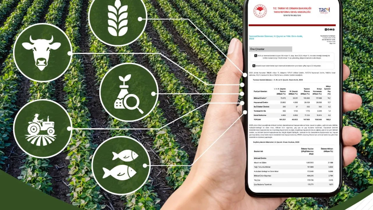 Tarım ve Orman Bakanlığı, 2025 yılı tarımsal destek ödemelerini açıkladı. Toplam 158,55 milyar TL'lik bütçenin tamamı kullanılırken, 2,9 milyon çiftçi çeşitli desteklerden yararlandı.