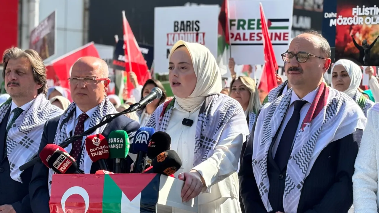 Gazze'deki insani krize dikkat çeken etkinlikte, Bursa AK Parti Kadın Kolları Başkanı İmren Çavuşoğlu, Bursa'daki basın açıklamasında duygusal bir konuşma yaptı. Çavuşoğlu, 'Duvarlara kanla yazılmış isimler, bir annenin yitik hayali, bir çocuğun göremeyeceği bahar, bir bebeğin yaşayamayacağı çocukluk. Bu acının adı: Gazze. Bugün kadınlar olarak Gazze'nin sessiz çığlığına ses olmak için meydanlardayız. 81 ildeki bu zincir, evlatlarını kaybeden anne-babaların, öksüz-yetim çocukların ve insanlığını kaybetmeyen herkesin zinciridir' dedi.