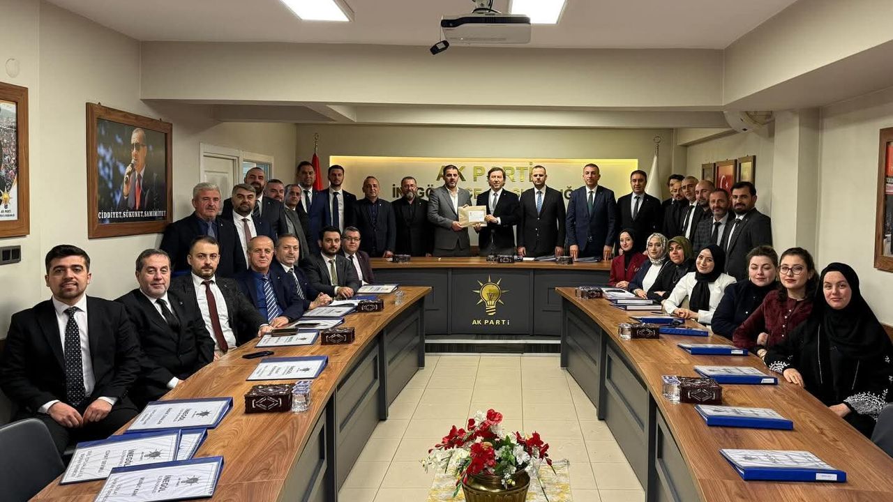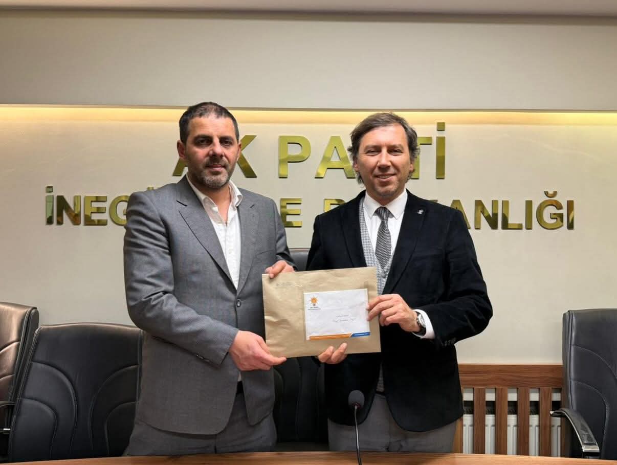 AK Parti İnegöl İlçe Başkanlığı binasında düzenlenen toplantıda, kampanya kapsamında sağlanan destek, Kulüp Başkanı Kani Ademoğlu’na teslim edildi.