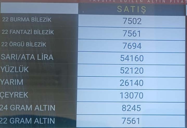 | 24 Ayar Gram Altın | 7.355 TL | 8.245 TL | +890 TL |
