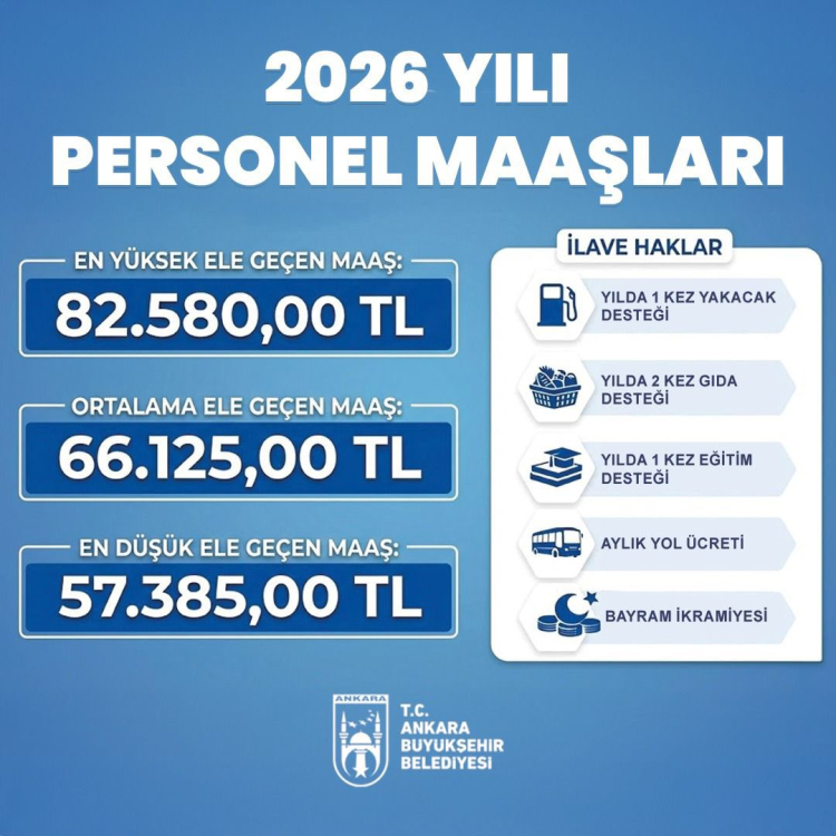 Ankara Büyükşehir Belediyesi ile yetkili sendikalar arasında imzalanan Toplu İş Sözleşmesi kapsamında 2026 yılı maaş zamları ve sosyal haklar netleşti. Yeni düzenlemeyle belediye çalışanlarının maaşlarında önemli artışlar sağlandı.