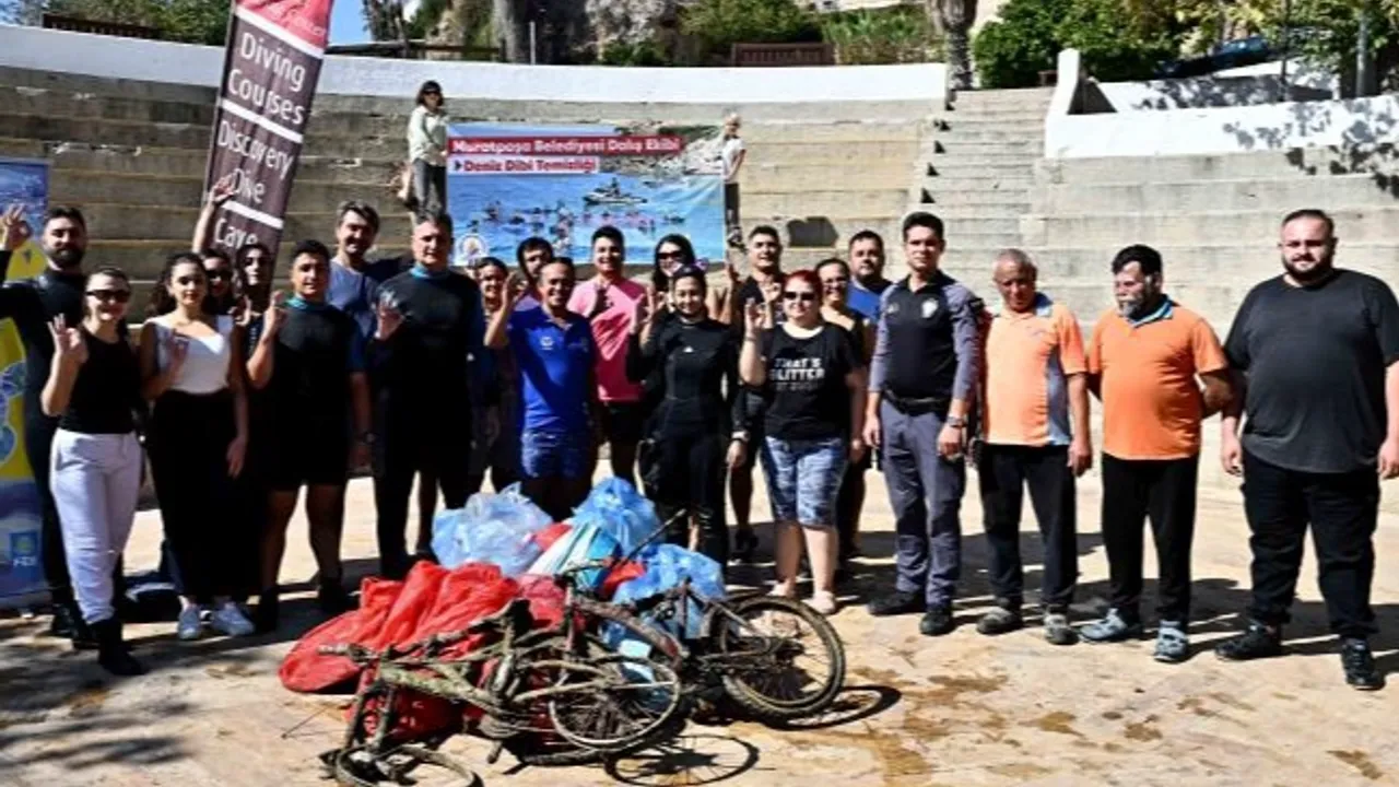Antalya Muratpaşa Belediyesi'nin gönüllü dalgıç ekibi, yaz sezonunun ardından Kaleiçi Yat Limanı'nda deniz dibi temizliği gerçekleştirdi. Temizlikte iki bisiklet ve bir tabanca dahil çok sayıda atık çıkarıldı.