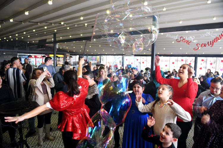 Program kapsamında sahnelenen bubbleshow ise özellikle çocuklar ve gençler için günün en renkli anlarından biri oldu. Köpükten oluşturulan dev baloncuklar büyük ilgi görürken, aileler bu anları cep telefonlarıyla kaydederek ölümsüzleştirdi. Müzik dinletisiyle devam eden etkinlikte katılımcılar şarkılara hep birlikte eşlik etti.