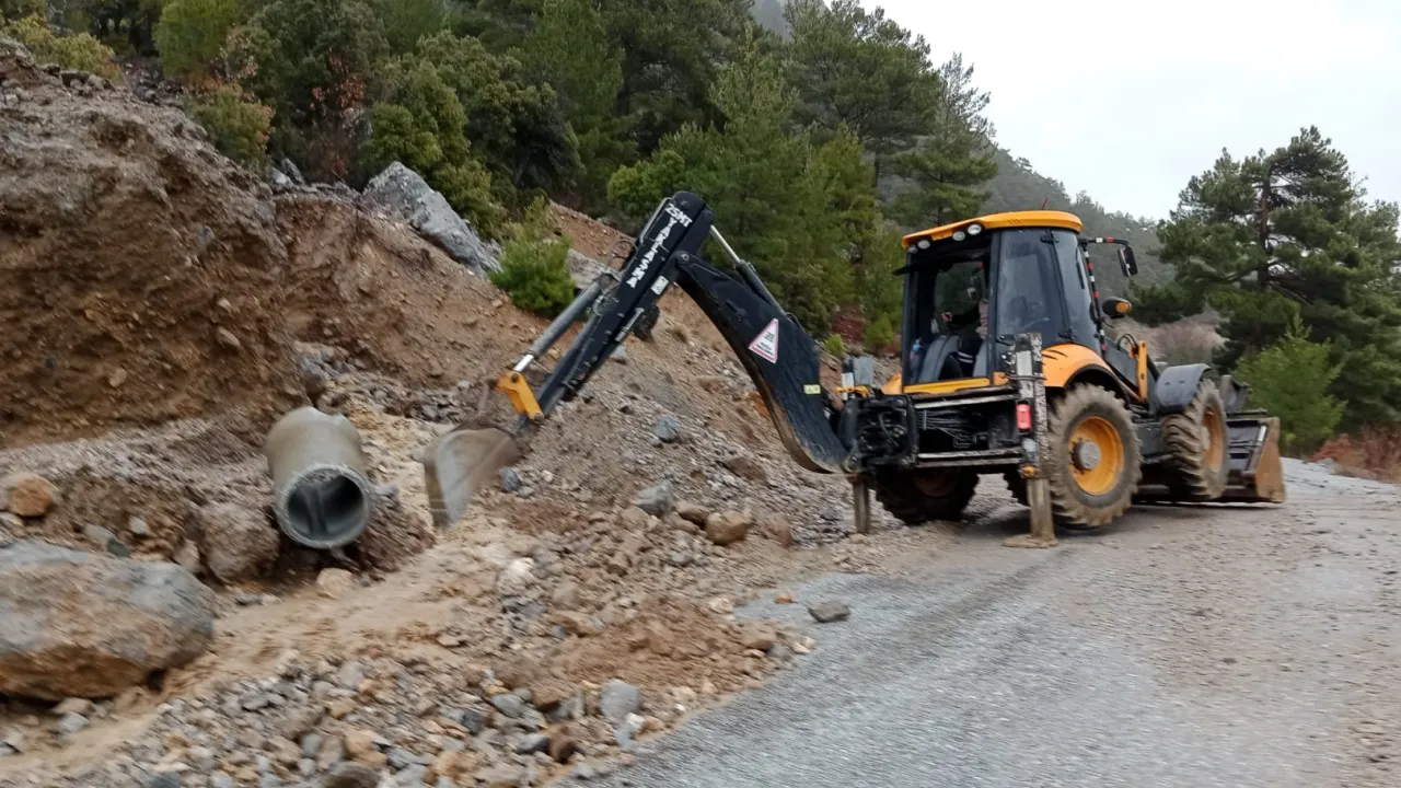 Antalya Büyükşehir Belediyesi ekipleri, olumsuz hava şartlarının etkisini sürdürdüğü Alanya kırsalında yolları açık tutmak için aralıksız çalışıyor.