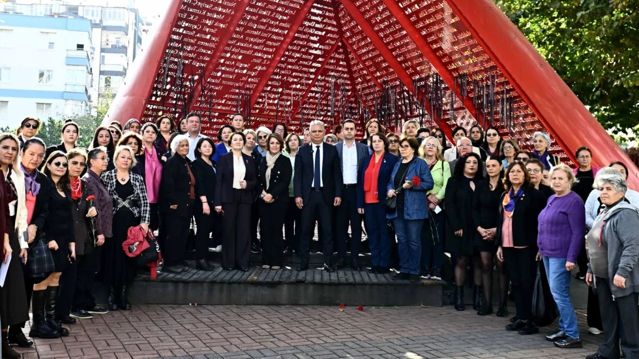 Antalya'da Muratpaşa Belediyesi, 25 Kasım Kadına Yönelik Şiddete Karşı Uluslararası Mücadele Günü'nde, kadın cinayetlerine karşı bir simge haline gelen Al Yazma Anıtı'na kırmızı karanfiller bıraktı.