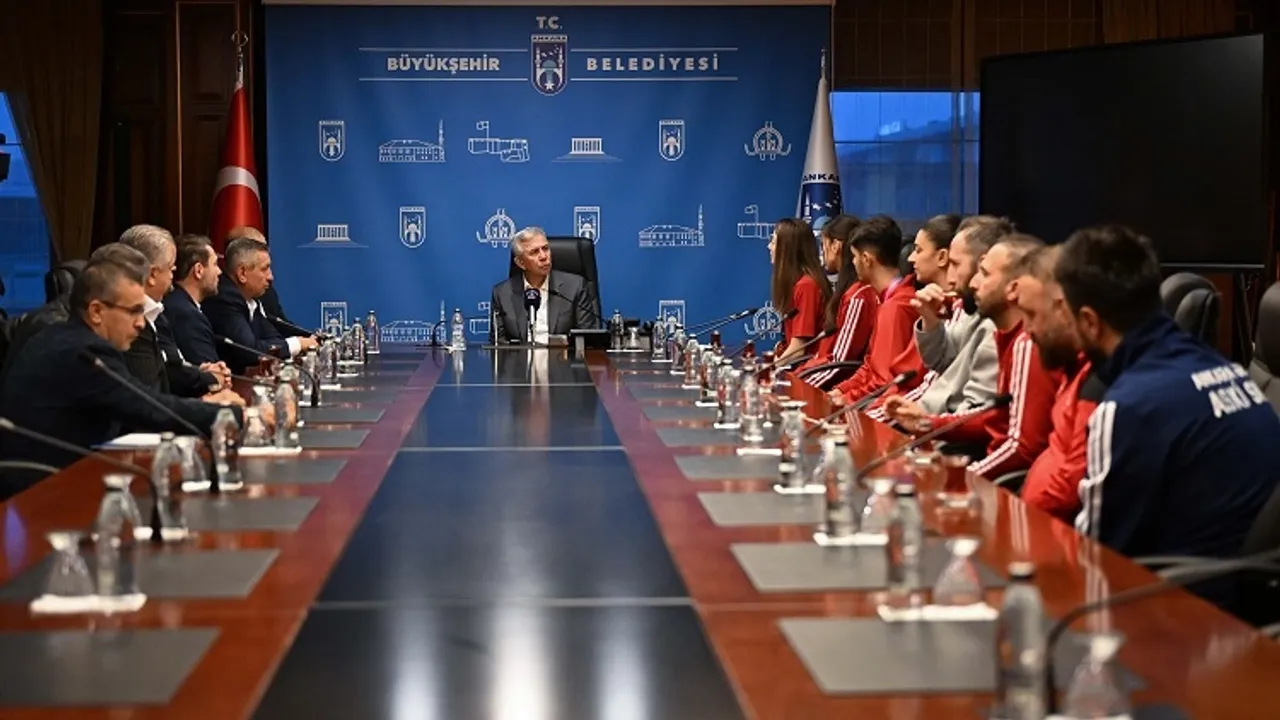 Esenboğa Havalimanı'nda coşkulu bir törenle karşılanan sporcular, Ankara Büyükşehir Belediye Başkanı Mansur Yavaş'ı ziyaret etti. Yavaş, 'İnşallah daha nice madalyalar alıp ülkemizi gururlandıracaksınız. Bizler de sizlerle gurur duyacağız. En iyi şartlarda nasıl çalışabilirsiniz onun imkânlarını artırmaya çalışıyoruz' dedi.