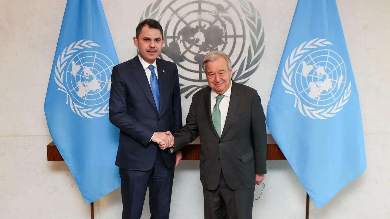 BM binasındaki görüşmede COP31 sürecini ele aldıklarını belirten Bakan Kurum, 'Görüşmemizde, küresel iklim krizi, enerji güvenliği ve savunmasız toplulukların korunması gibi kritik konuların yanı sıra Sıfır Atık ve döngüsel ekonomi yaklaşımları, finansman, teknoloji transferi ve kapasite geliştirme konularına da değindik. Çok taraflılığı güçlendirmek ve iklim eyleminin uygulanmasını hızlandırmak için COP31'i güven ve diyalog, uzlaşma ve eylemin merkezi bir platformu olarak görüyoruz; Antalya'daki liderler zirvesi ile tüm dünyaya ortak sorumluluk mesajı göndermeye hazırlanıyoruz. Bu verimli toplantı ve değerli iş birliğimiz için Genel Sekreter'e teşekkür ediyorum' paylaşımını yaptı.