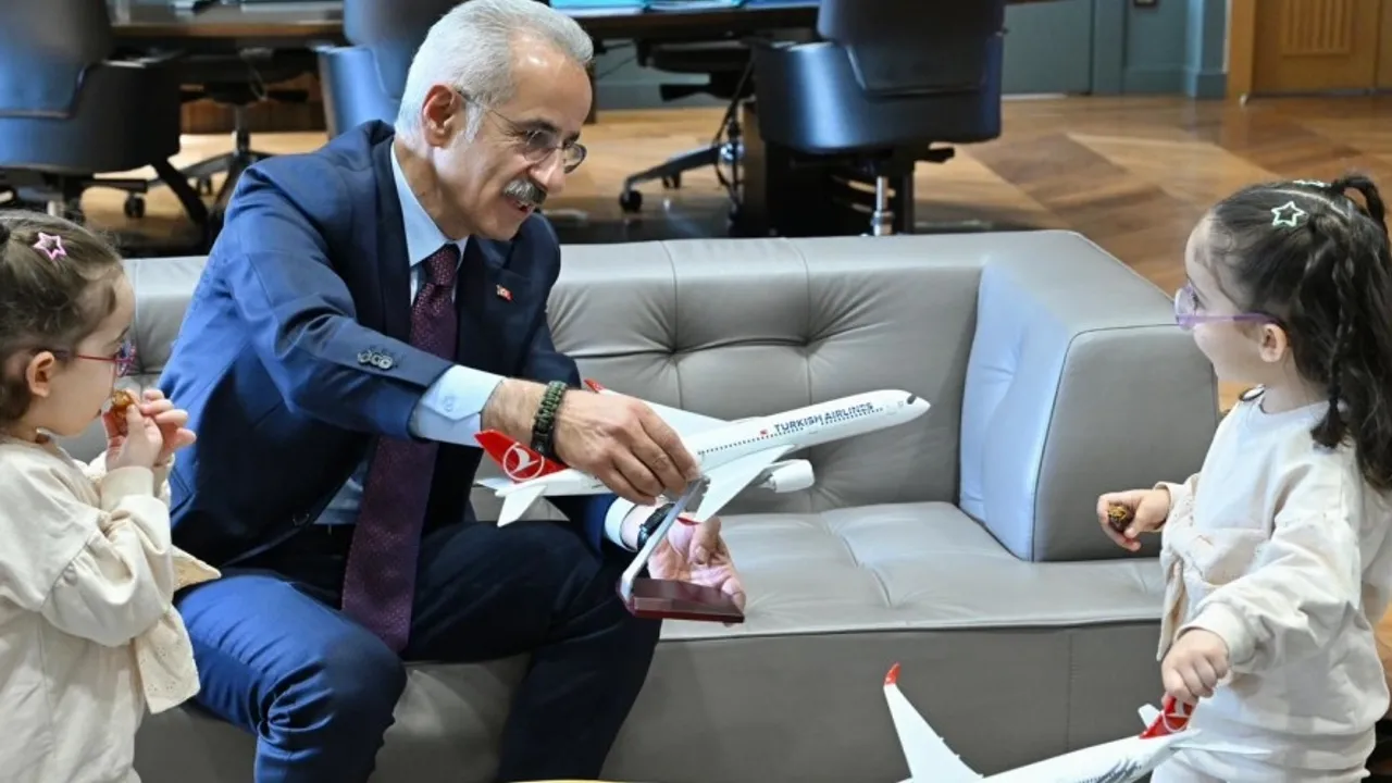Ulaştırma ve Altyapı Bakanı Abdulkadir Uraloğlu, babalarıyla birlikte uçak inişlerini izlerken kaydedilen görüntüleriyle büyük beğeni toplayan ikiz kardeşler Erva ve Zümra'yı Ulaştırma ve Altyapı Bakanlığı'nda ağırladı.