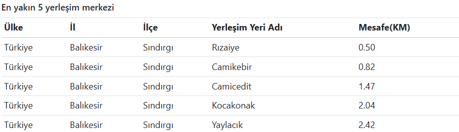 Merkez üssüne en yakın yerleşim yerleri arasında Rızaiye (0.5 km), Camikebir (0.8 km), Camicedit (1.4 km), Kocakonak (2 km) ve Yaylacık (2.4 km) mahalleleri yer aldı.