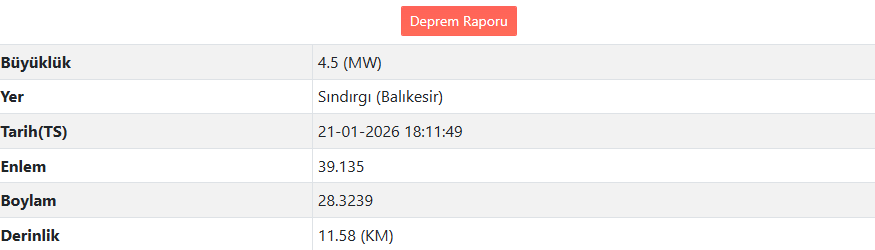 Sındırgı ilçesinde 21 Ocak 2026 günü art arda 3 deprem meydana geldi. Sarsıntıların Balıkesir başta olmak üzere çevre illerde de hissedildiği öğrenildi.