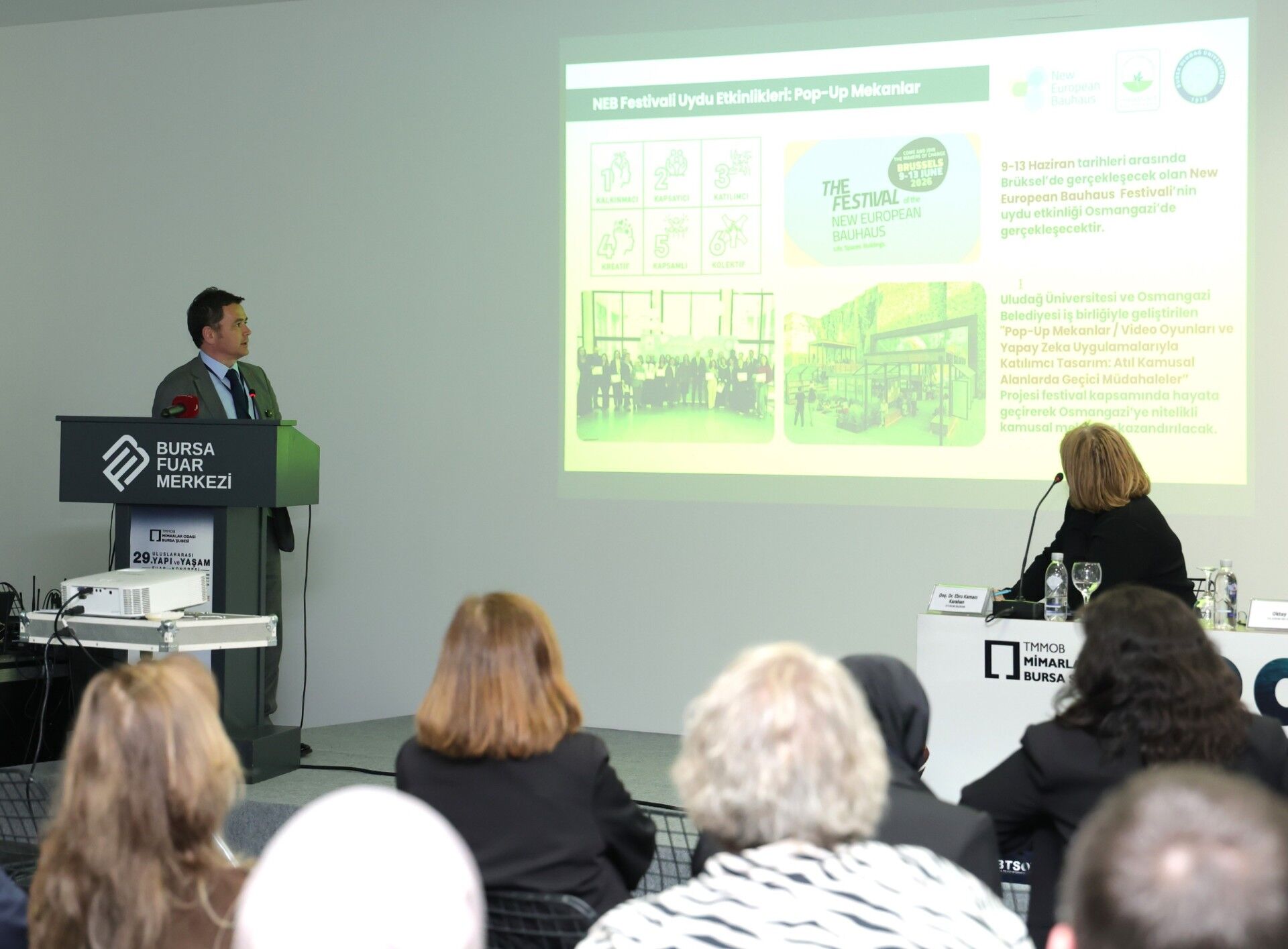 Mimarlar Odası Bursa Şubesi tarafından “Yaşamın, Kentlerin ve Mimarlığın Geleceği” ana temasıyla düzenlenen “Yerel Yönetimler Vizyon Projeler” oturumuna katılan Osmangazi Belediye Başkanı Erkan Aydın, burada gerçekleştirdiği sunum ile Osmangazi’de hayata geçirilmesi planlanan projeleri akademisyenlerle paylaştı.