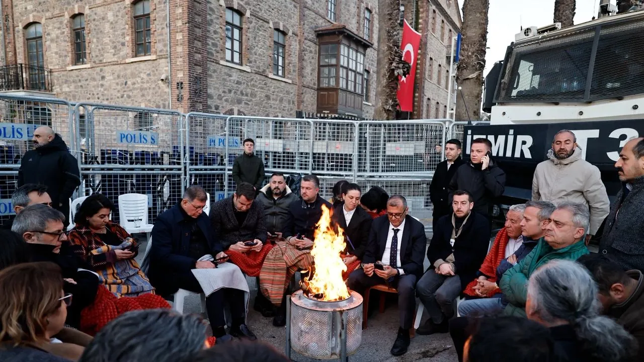 Bütün gece bina önünde olduklarını belirten Başkan Tugay, 'İl başkanımız, bazı ilçe belediye başkanlarımız, meclis üyelerimiz ve partililerimiz burada. Kararlılığımızı göstermek için buradayız. Bu süreç hepimizi zorluyor ancak birilerinin buna karşı durması gerektiğine inanıyorum. Çünkü tümüyle yanlış ve haksız olan bu tutuma karşı net bir şekilde 'hayır' denilmesi gerekiyor. Biz yalnızca bu binanın korunması ve elde tutulması için değil, benzer durumların tekrar yaşanmaması için de çaba gösteriyoruz. Umuyorum ki bir sonuca ulaşırız. Ancak bu kararlı duruşun sürmesi gerekiyor. Daha fazla desteğe ihtiyaç duyduğumuz da bir gerçek. Buna rağmen, gerekirse tek başıma da devam edeceğim. Gücümüz yettiğince buradayız' dedi.