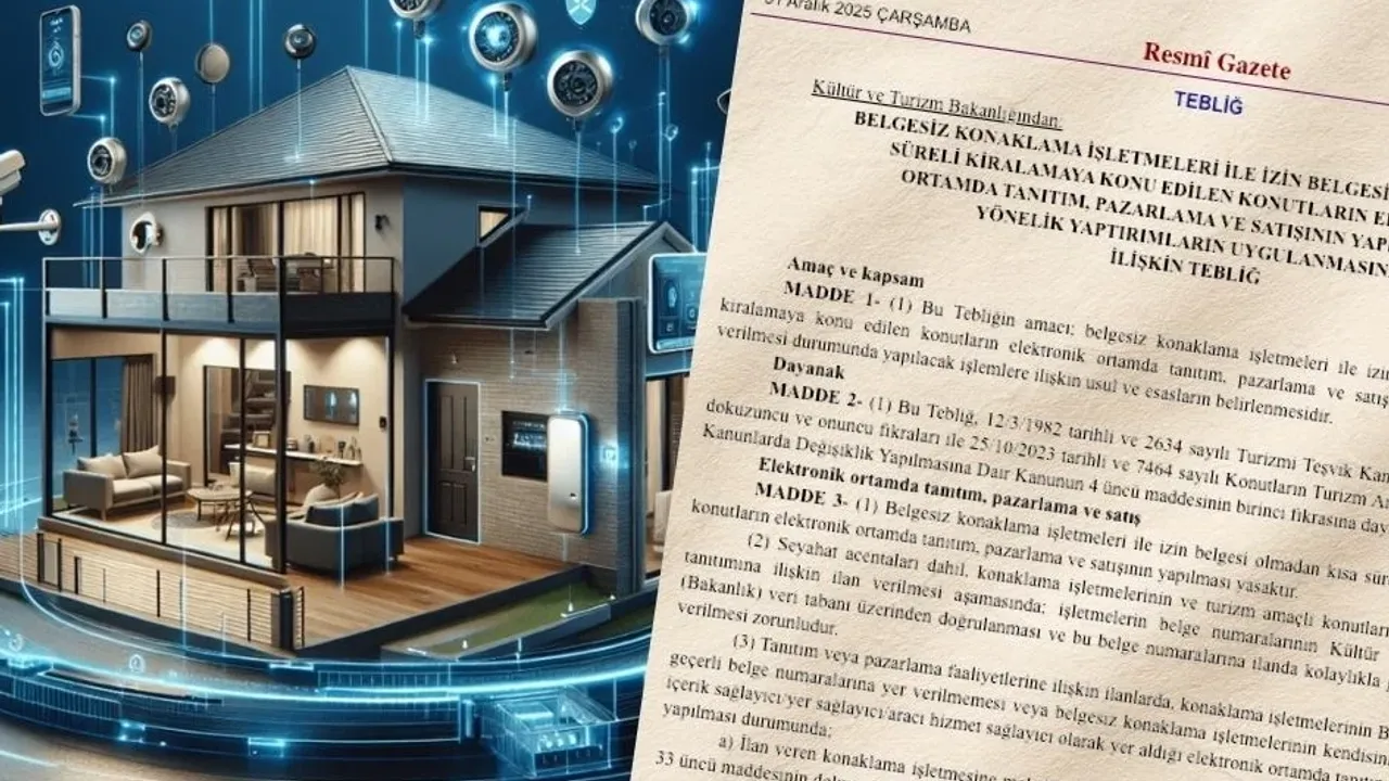 Kültür ve Turizm Bakanlığı, belgesiz konaklama işletmeleri ile izin belgesi olmadan kısa süreli kiralamaya konu edilen konutların elektronik ortamda tanıtım, pazarlama ve satışına yönelik yaptırımları düzenleyen tebliği Resmî Gazete'de yayımladı.