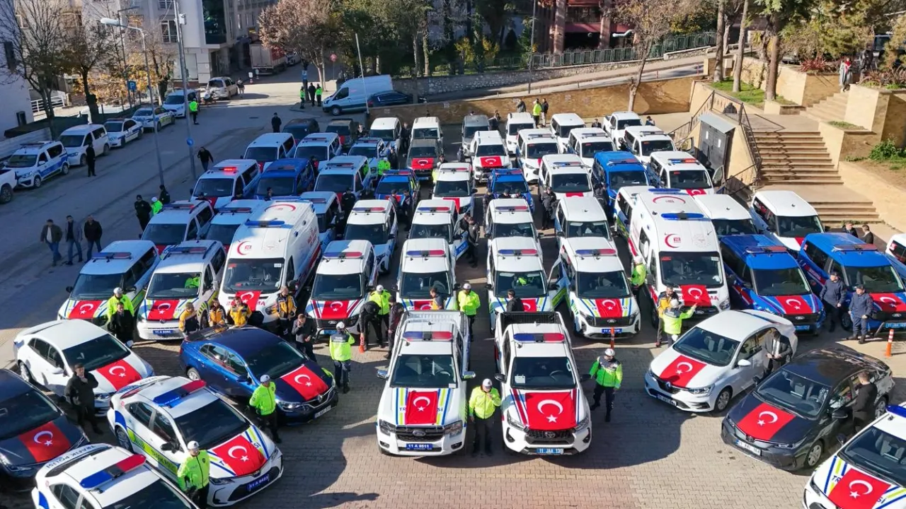 Bilecik'te güvenlik ve sağlık hizmetlerinin sahadaki gücünü artıracak önemli bir yatırım daha hayata geçirildi. İçişleri Bakanlığı koordinesinde Emniyet ve Jandarma teşkilatlarının kullanımına tahsis edilen 67 yeni araç ile Sağlık Bakanlığı destekleriyle temin edilen 2 yeni ambulans, düzenlenen törenle hizmete sunuldu.
