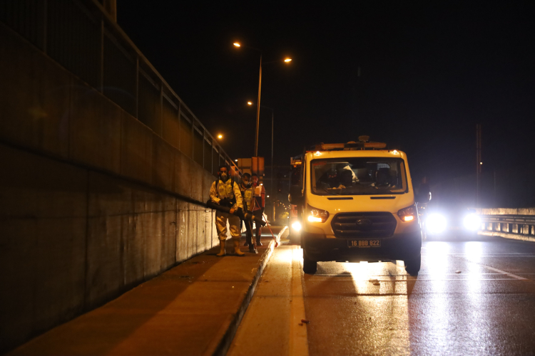 “BURSALILARI GÜLÜMSETMEYE DEVAM EDECEĞİZ” Park ve Bahçeler Dairesi Başkanı Hakan Tanrıöver, Bursa Büyükşehir Belediyesi’nin daha temiz ve daha yaşanabilir bir Bursa için gece gündüz çalıştığını söyledi. 147 kişilik ekip ve araçlarla temizlik ve estetik çalışmalarını yürüttüklerini belirten Tanrıöver, “Herhangi kaza durumunda yol üzerinde tekrar kazaya sebebiyet verebilecek olumsuzlukların önlenmesi için ani müdahale ekiplerimiz de hazır bulunuyor. İnsanların yaşamlarını olumsuz etkilememek ve trafik akışını engellememek için gece saatlerinde çalışmalarımızı yoğunlaştırıyoruz. Kentin temizliği için emek veren tüm çalışma arkadaşlarımıza teşekkür ediyorum. Çalışmalarımızla Bursalıları gülümsetmeye devam edeceğiz” dedi.