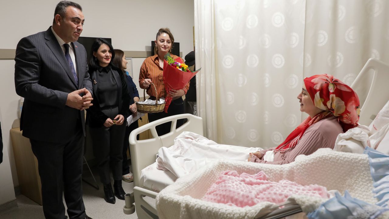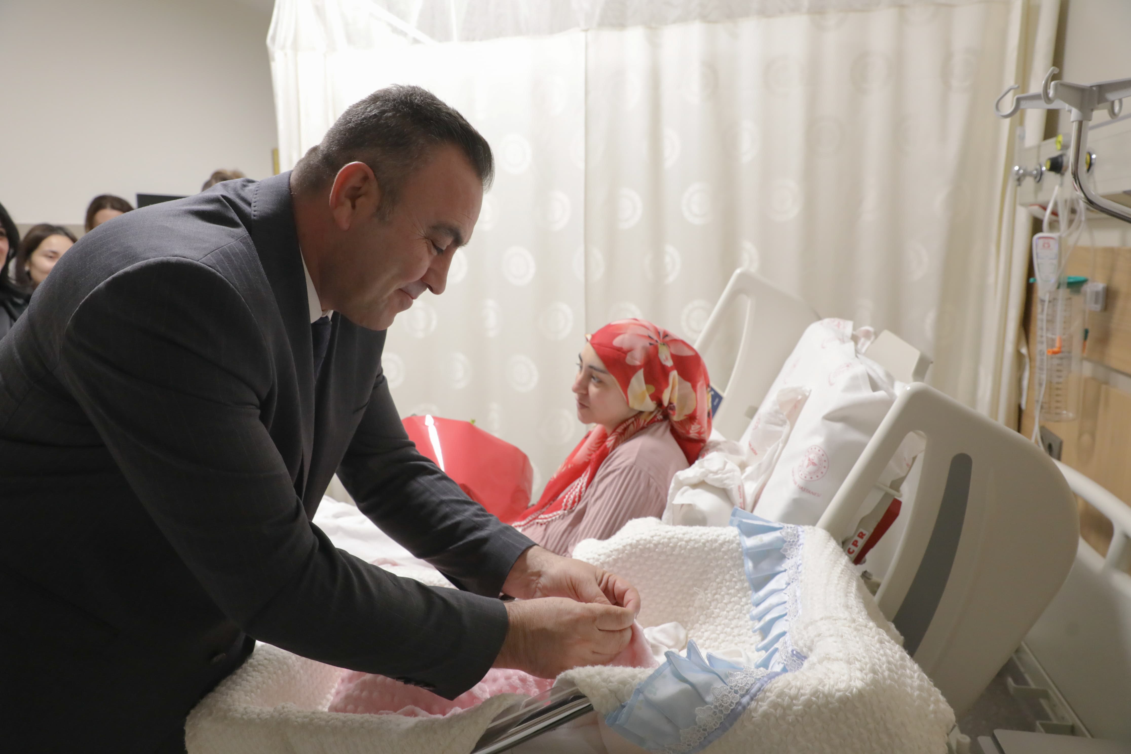 Büyükşehir Belediyesi Başkanvekili Saldız, daha sonra 2026’nın ilk bebeğini de ziyaret etti. Ebru ve Gökhan Çiçek çifti, Damla ismini verdikleri bebeklerinin sevincini Başkanvekili Saldız ve beraberindekilerle birlikte yaşadı. Çiçek çiftine de çiçek ve bebek seti takdim edilirken, Başkanvekili Saldız minik bebeğe altın taktı.