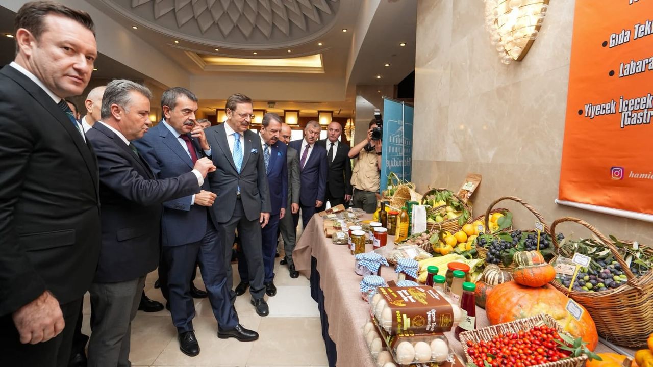 Protokol öncesinde, TOBB Başkanı M. Rifat Hisarcıklıoğlu ile Milli Eğitim Bakanımız Yusuf Tekin, okulumuzun ürettiği tarımsal ürünlerin sergilendiği stantı ziyaret etti.