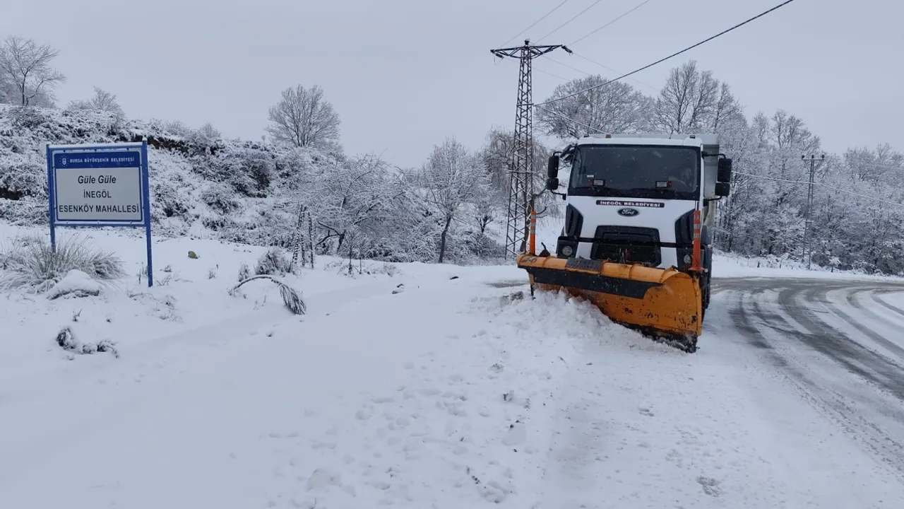 Kar yağışının şiddetini arttırdığı İnegöl'de, özellikle yüksek kesimlerde kar kalınlığı ciddi seviyelere erişti. İnegöl Belediyesi, kar yağışının hayatı olumsuz yönde etkilememesi ve özellikle ulaşımda aksamalar olmaması adına tüm ekip ve ekipmanlarıyla sahada. Bir yandan kırsal bölgelerde bir yandan da merkezde karla mücadele çalışmaları aralıksız şekilde sürüyor.