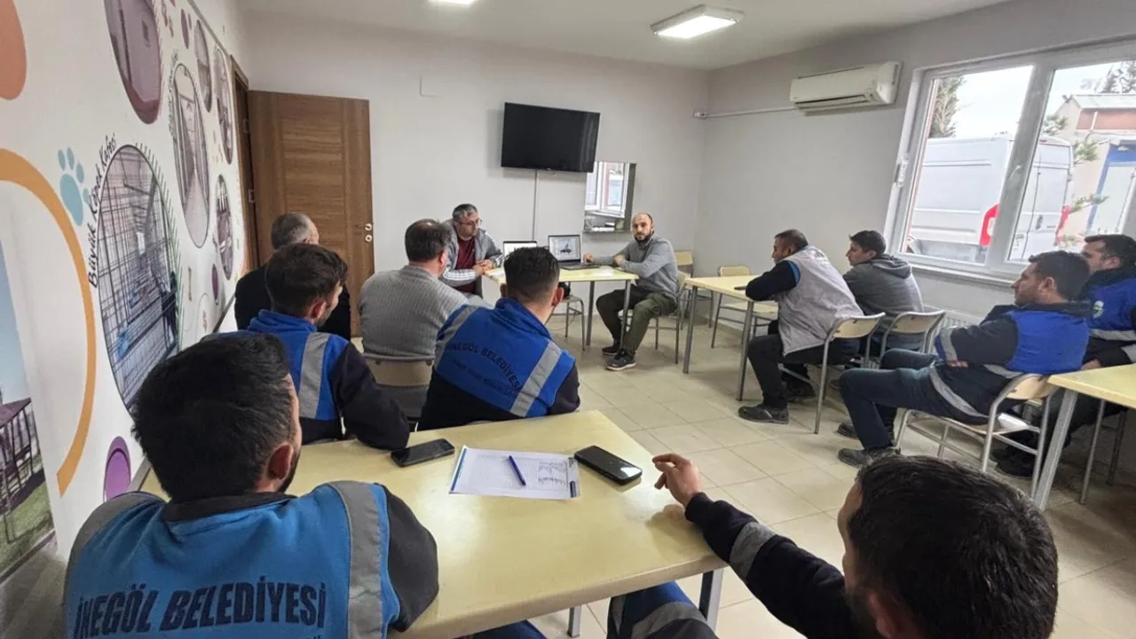 Bursa'da İnegöl Belediyesi, kurum içi eğitimler kapsamında Veteriner İşleri Müdürlüğü personeline yönelik arılara güvenli müdahale ve arı sokmalarında doğru ilk yardım uygulamaları eğitimi düzenledi.