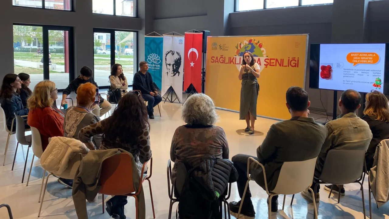 Nilüfer Belediyesi ile TMMOB Gıda Mühendisleri Odası Bursa Şubesi iş birliğinde, güvenli beslenme ve sağlıklı nesiller için farkındalık yaratmak amacıyla gerçekleştirilen 'Sağlıklı Gıda Şenliği', bir söyleşiyle sona erdi. Nilüfer Pancar Deposu'ndaki etkinlikte Sibel Tokat, 'Gıda Etiketi Okuryazarlığı' konulu bir sunum yaptı. Etkinliğe Nilüfer Belediye Başkan Yardımcısı Emre Karagöz de katıldı.