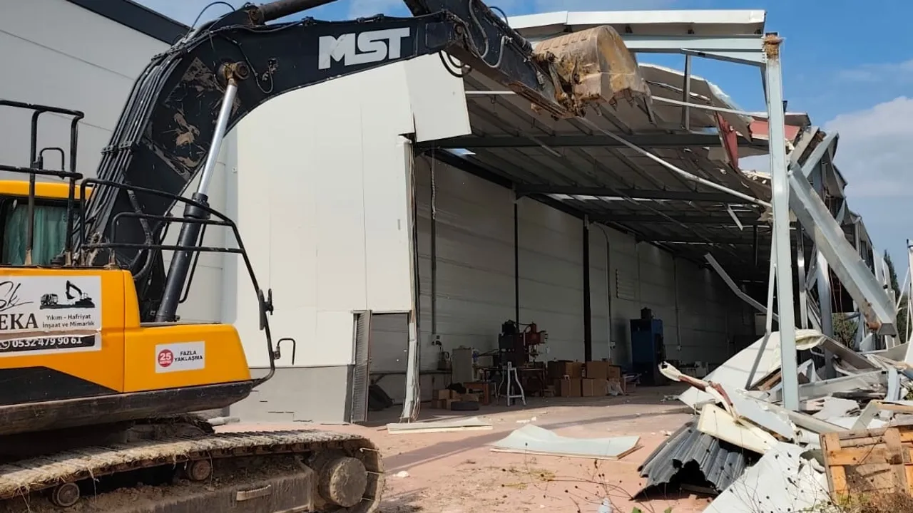 Bursa Nilüfer Belediyesi ekipleri, Ürünlü Mahallesi'nde fabrika olarak kullanılan 550 ve 650 metrekarelik iki kaçak yapıyı yıkarak kullanılamaz hale getirdi.
