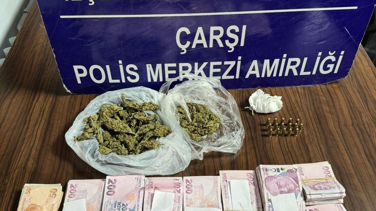 Uyuşturucu ve Mühimmat: 68.70 gram esrar maddesi ve 16 adet tabanca fişeği.