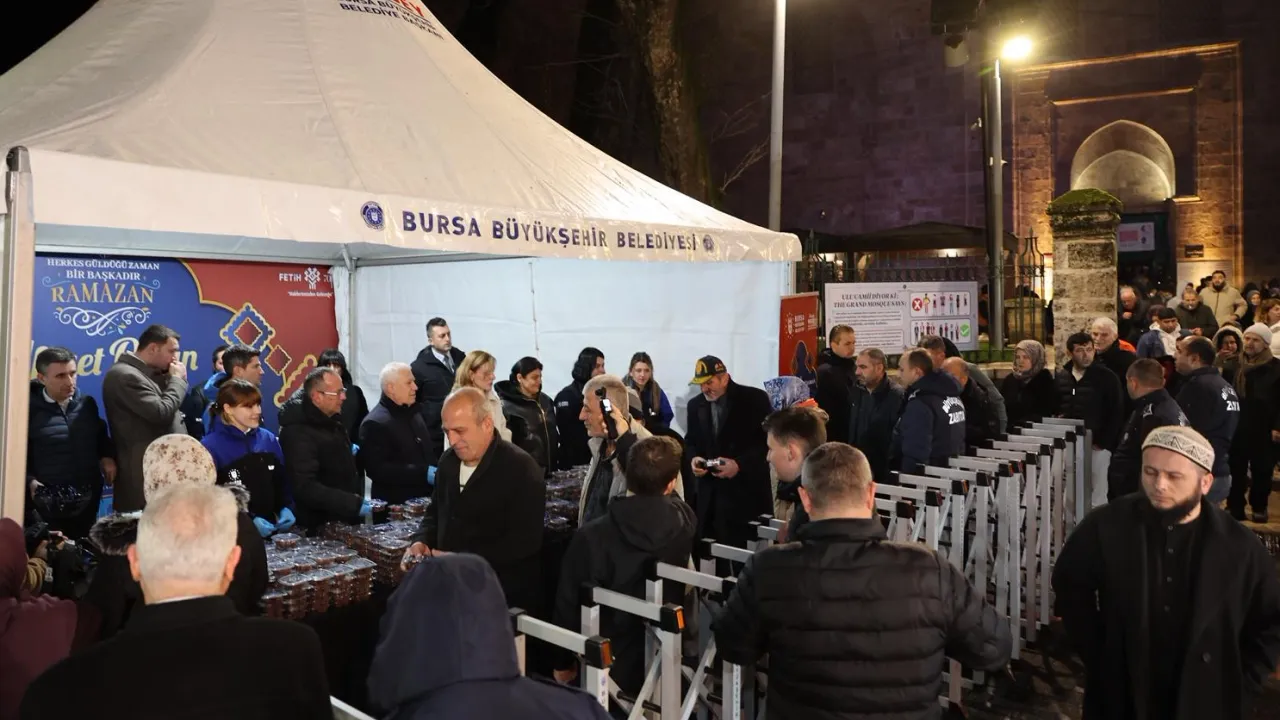 Bursa Büyükşehir Belediye Başkanı Mustafa Bozbey, eşi Seden Bozbey ile birlikte Ramazan ayının başlangıcında Ulu Cami'de kılınan ilk teravih namazının ardından, Ramazan'ın hayırlı ve bereketli olmasını dileyerek vatandaşlara tatlı ikramında bulundu.
