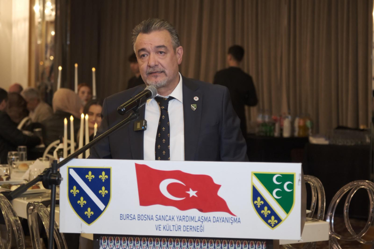 Gecenin açılış konuşmasını yapan Bursa Bosna Sancak Derneği Başkanı Sadık Şengül, derneğin 21 yıllık birikimine vurgu yaparak, '21 yıldır titizlikle yaşattığımız birlik, kardeşlik ve kültürel dayanışma ruhunu tazelemek için bir araya geldik. Bizler; Bosna'dan Sancak'a, Drina'dan Vardar'a kadar uzanan o geniş gönül coğrafyamızın ruhunu, Bursa'mızın maneviyatıyla harmanlamanın gururunu yaşıyoruz. Derneğimizin temel misyonu; atalarımızdan miras kalan değerleri, kentimize ve ülkemize birer erdem olarak sunmaktır. Bilge Kral Aliya İzzetbegoviç'in dediği gibi; 'Yeryüzünün öğretmeni olabilmek için, gökyüzünün öğrencisi olmak gerekir.' Bizler de köklerimizden aldığımız dersle, geleceğe umutla ve özgüvenle yürüyoruz. Bursa'nın sanayisinden ticaretine her alanda alın teriyle değer katan bir topluluğuz.' dedi.