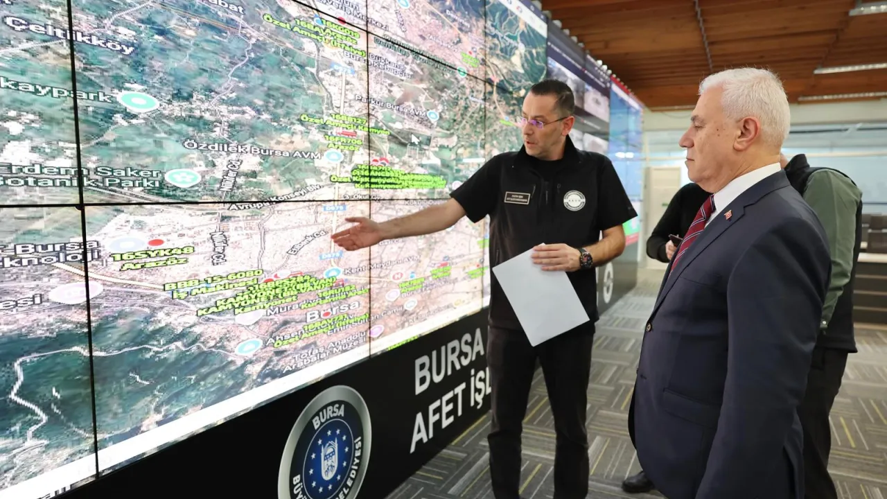 Bursa'da etkili olan şiddetli rüzgâr ve etkili yağışa karşı aralıksız çalışan Büyükşehir Belediyesi ekipleri, vatandaşların mağduriyet yaşamaması için olaylara hızlı bir şekilde müdahalede bulunuyor. Sahada görev yapan ekipleri ziyaret ederek çalışmalar hakkında bilgi alan Bursa Büyükşehir Belediye Başkanı Mustafa Bozbey, daha sonra Merinos Yerleşkesi'ndeki Afet Koordinasyon Merkezi'ne (AKOM) geçerek yetkililerle birlikte son durumu değerlendirdi.