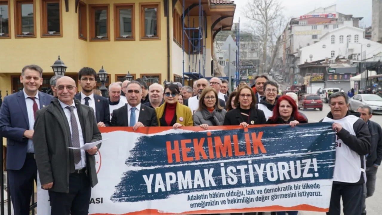 Bursa Tabip Odası (BTO), 14 Mart Tıp Haftası kapsamında 'Sağlık Hakkı Yürüyüşü' düzenledi. Setbaşı'nda gerçekleştirilen etkinlikte hekimler ve sağlık emekçileri bir araya gelerek sağlık sistemindeki sorunlara dikkat çekti.
