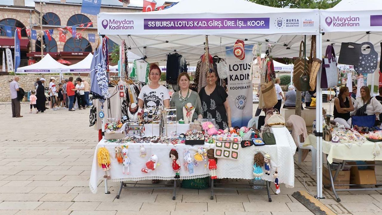 Bursa Büyükşehir Belediyesi tarafından ‘Meydan Kadınların’ sloganı ile düzenlenen etkinlikte, kadın kooperatifleri ve kadın derneklerinin el emeği ürünleri ve yöresel lezzetleri sergilendi.