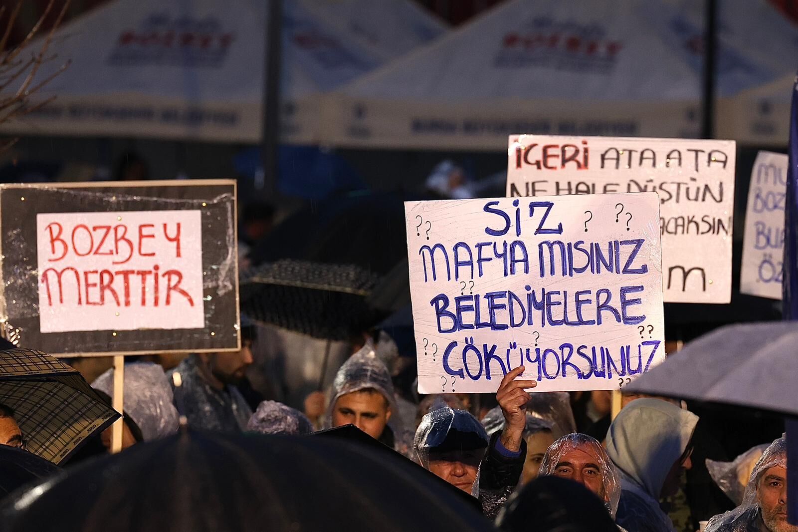 Soruşturma kapsamında, aralarında Bursa Büyükşehir Belediye Başkanı Mustafa Bozbey'in de bulunduğu 57 şüpheli hakkında uygulanan gözaltı işleminin ardından kentte protestolar sürüyor.
