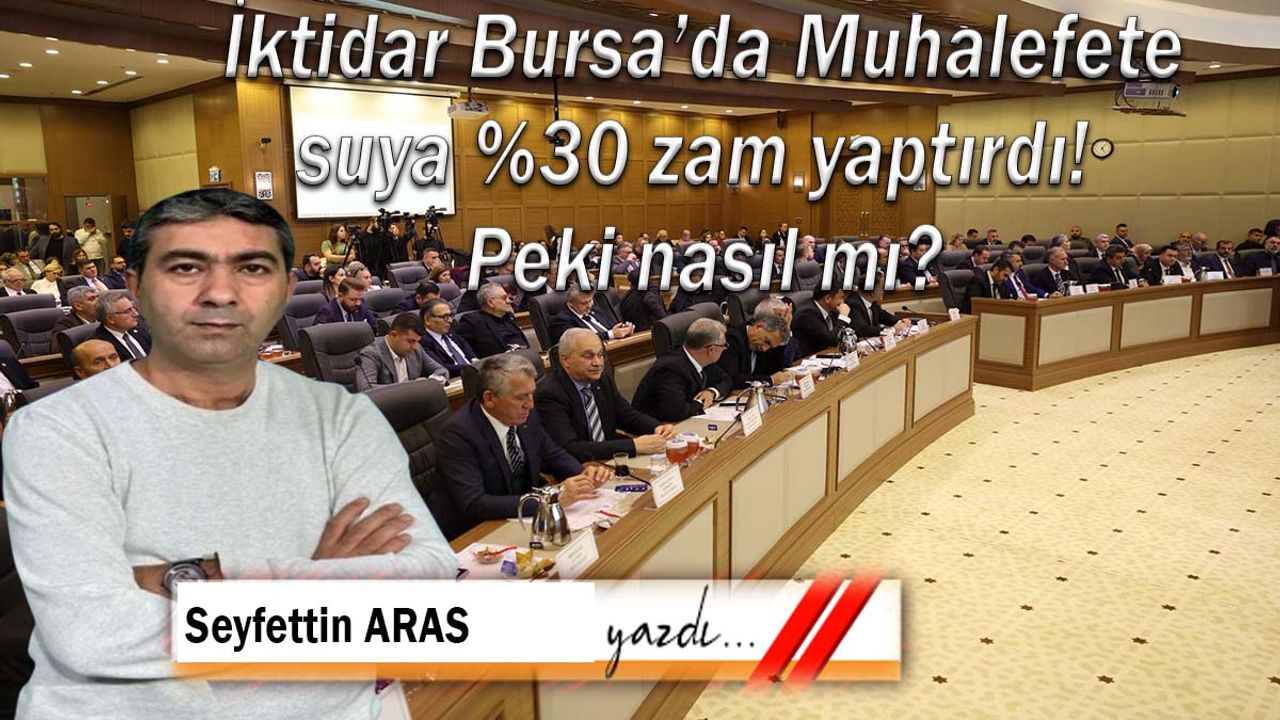 Durum böyle olunca muhalefet çoğunluğu ele aldı ve sonuç olarak Bursa’da suya yüzde 30 zam yapıldı. Zam sonrası tepki gösterenler acaba bu zammı iktidar mı yaptı yoksa muhalefet mi? Sorusunu kendilerini sorması gerekmiyor mu?