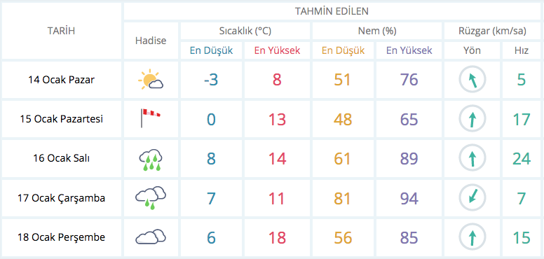 Bugün dahil 5 günlük Bursa hava durumu şöyle: