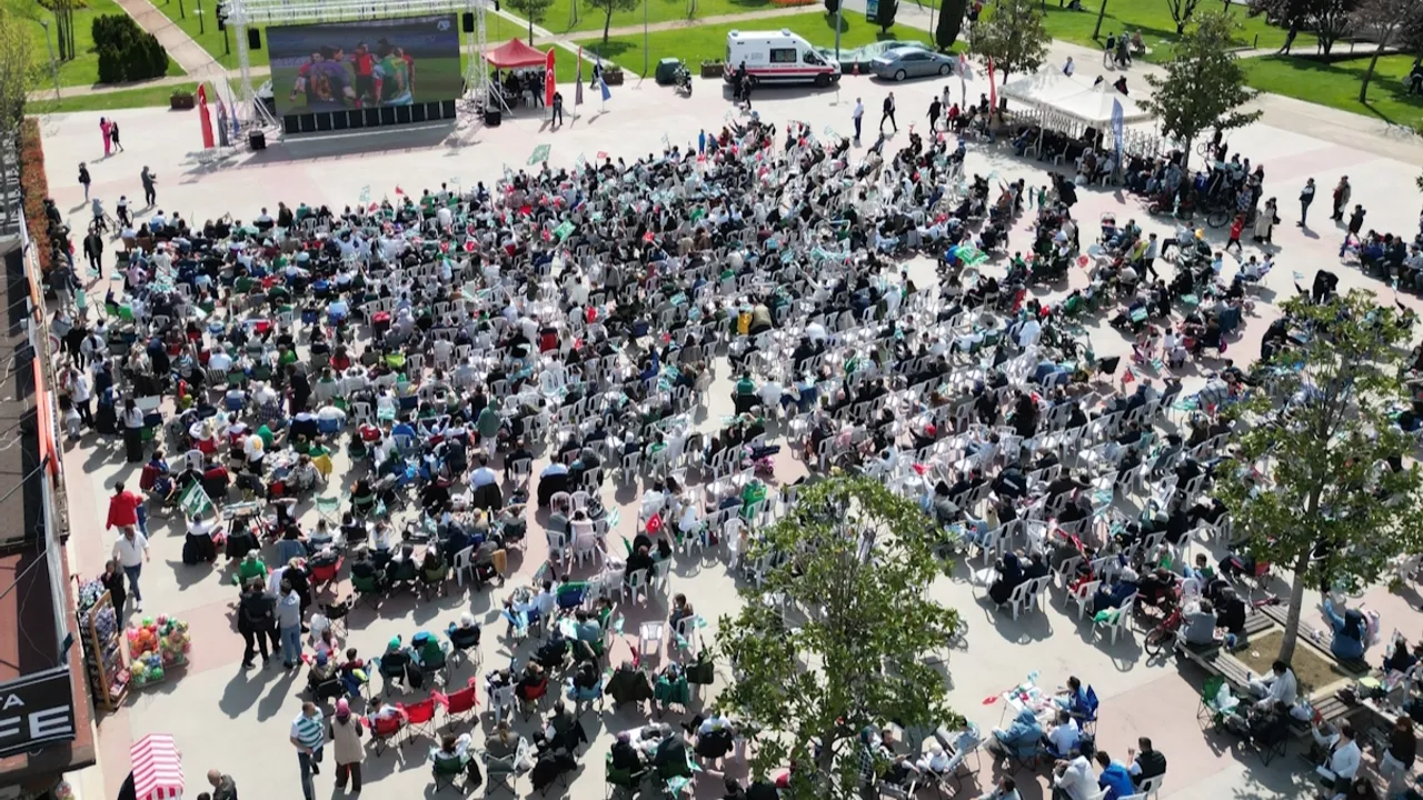 Hüdavendigar Kent Parkı ve Kültürpark Atatürk Stadyumu girişinde kurulan dev ekranlarda şampiyonluk maçını izleyen on binlerce Bursalı, Bursaspor'un 5-1 kazandığı maçın bitiş düdüğüyle birlikte alanı bayram yerine çevirdi. Hem galibiyet hem de şampiyonluk coşkusunu yaşayan Bursalılar, organizasyon için Büyükşehir Belediyesi'ne teşekkür etti.