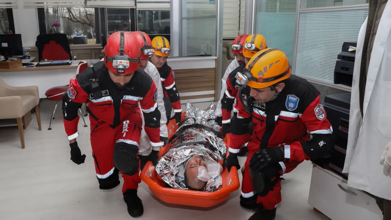 BUSKİ Genel Müdürlüğü Binası'nda gerçekleştirilen tatbikat ile deprem ve yangın senaryolarında aşamalı olarak yapılması gerekenler aktarıldı.