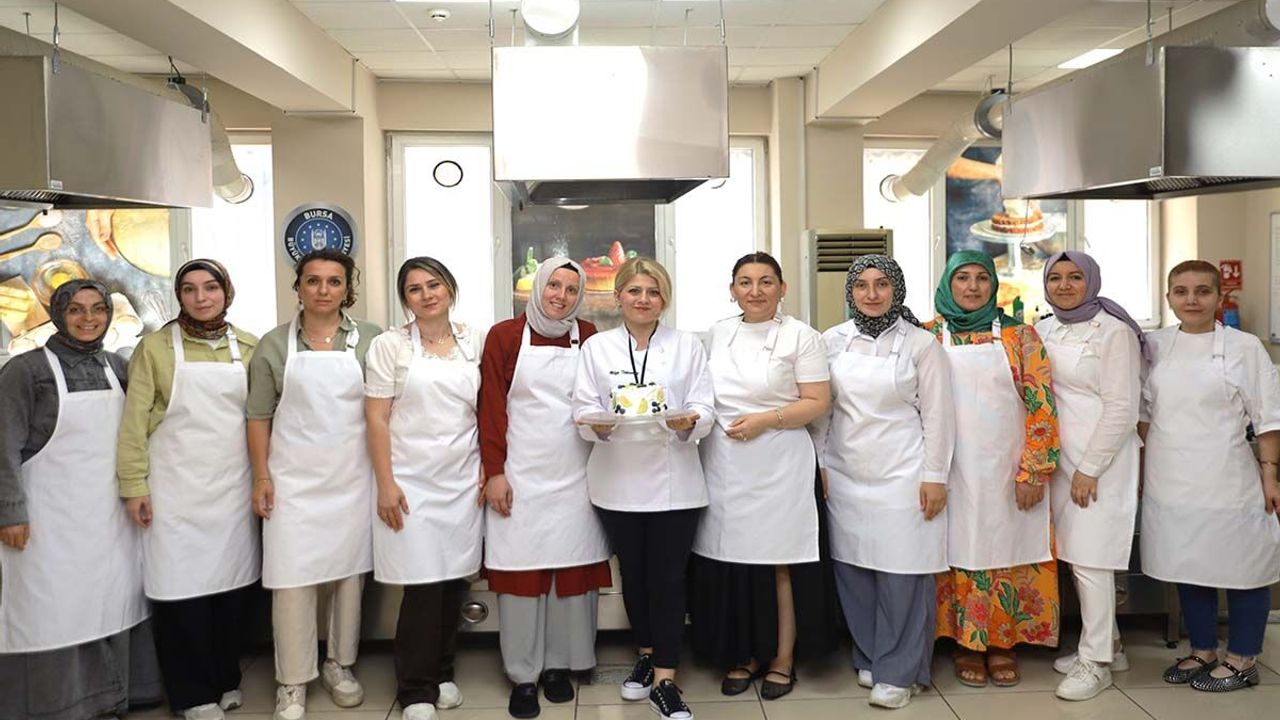 BUSMEK Yeni Karaman Kurs Merkezi’nde düzenlenen ‘Yaş pasta yapımı’ eğitiminde ise yaş pasta yapım aşamaları eğitmenler gözetiminde ayrıntılı bir şekilde gösterilirken, pastanın temel hamuru pandispanya yapımı, pastacı kreması, sıvama ve süsleme teknikleri pratik olarak anlatıldı.