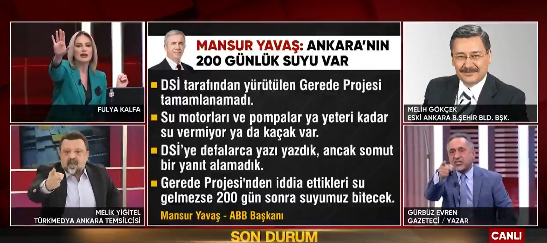CNN TÜRK Masası programında, Eski Ankara Büyükşehir Belediye Başkanı Melih Gökçek'in telefonla bağlandığı anlarda ortam zaten gergindi. Gazeteci Gürbüz Evren, konuşma sırası kendisine geldiğinde Melik Yiğitel'i hedef alarak, "Soru soran arkadaşlar Melih Bey'in ne kadar iyi, Mansur Bey'in ne kadar kötü olduğunu söylediler" ifadelerini kullandı. Bu sözler üzerine Yiğitel araya girmek isteyince ipler koptu. Evren’in "Melih ne olur bak, sözümü kesme bu senin adetin, ben sustum bu ana kadar" çıkışı, bardağı taşıran son damla oldu.