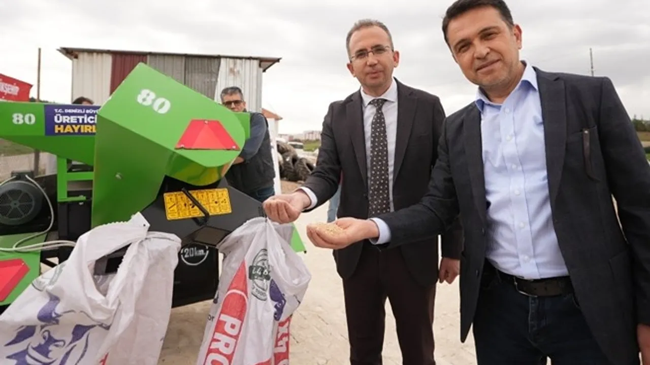 Denizli Büyükşehir Belediyesi Kırsal Hizmetler Dairesi Başkanı Yücel Arazsu tarafından teslim edilen makineler, Bekilli Belediye Başkanı Önder Demir'e takdim edildi.
