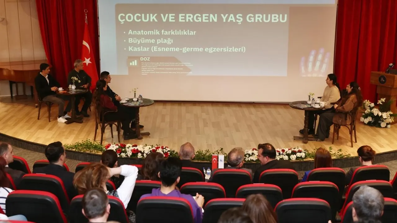 Etkinlikte, Dokuz Eylül Üniversitesi Araştırma ve Uygulama Hastanesi Başhekim Yardımcısı Dr. Öğr. Üyesi Özlem Yener, çocukluk döneminden yetişkinliğe uzanan süreçte sporun doğru planlanması, fiziksel gelişimle ilişkisi ve sağlıklı sınırları üzerine değerlendirmelerde bulundu.