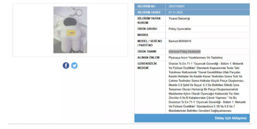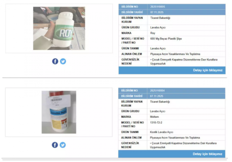 Bakanlık 7 Kasım tarihi itibarıyla yeni bir duyuru daha yaptı. 3 ürünün satışını yasaklayan bakanlık, söz konusu ürünlerin piyasadan toplatılmasına karar verdi.