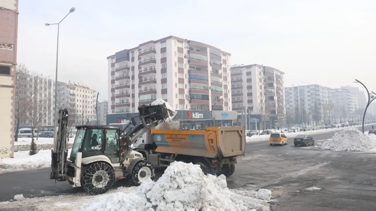 Diyarbakır Büyükşehir Belediyesi, kar ve buzlanma nedeniyle bazı kritik kavşak ve güzergâhlarda artan trafik yoğunluğunu gidermek amacıyla ana arterlerin kenarlarında biriken karları temizliyor.