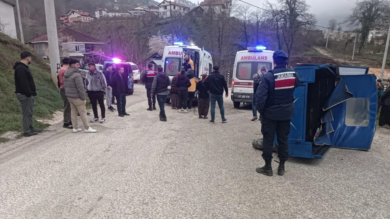 Düzce'de Yığılca ilçesinde 'patpat' olarak bilinen tarım aracının devrilmesi sonucu 2 kişi yaralandı.