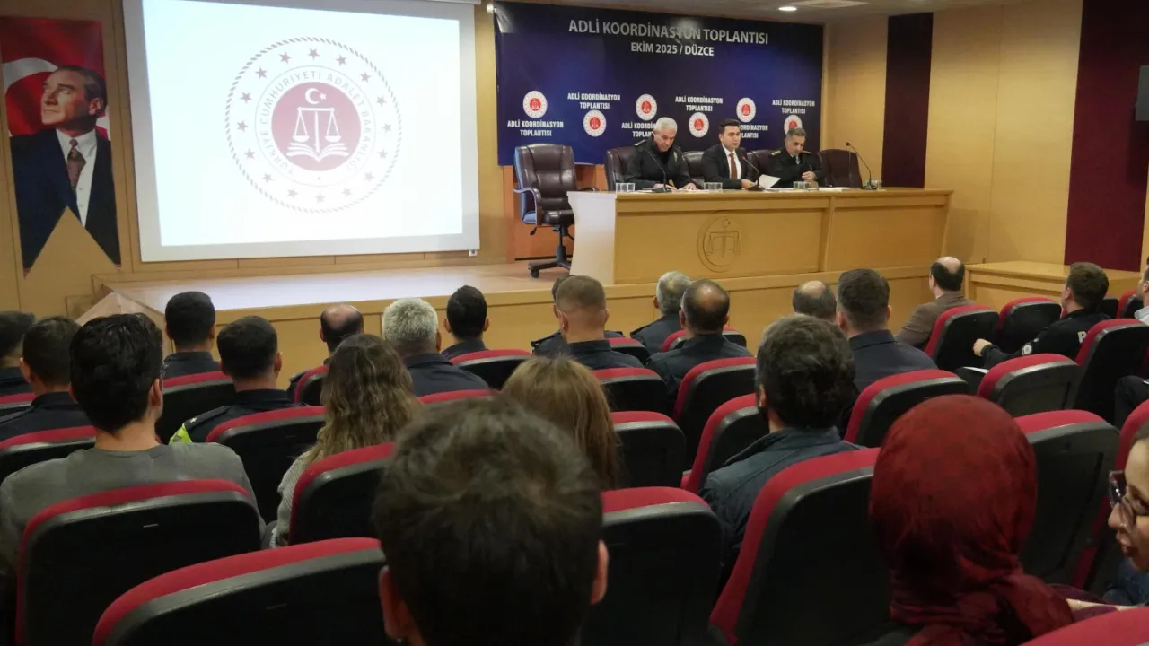 Düzce Adliyesi Konferans Salonu'nda gerçekleştirilen toplantıya, Cumhuriyet Başsavcısı Sayın Yasin Emre başkanlık etti.