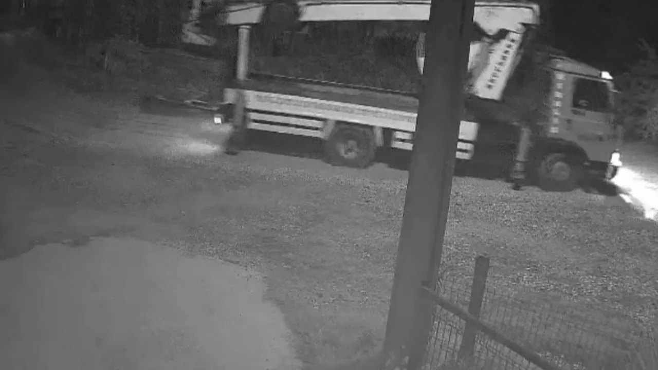Güvenlik kamerasına yansıyan görüntülerde, vincin telleri kopardığı ve direğin yıkıldığı anlar net bir şekilde görüldü.