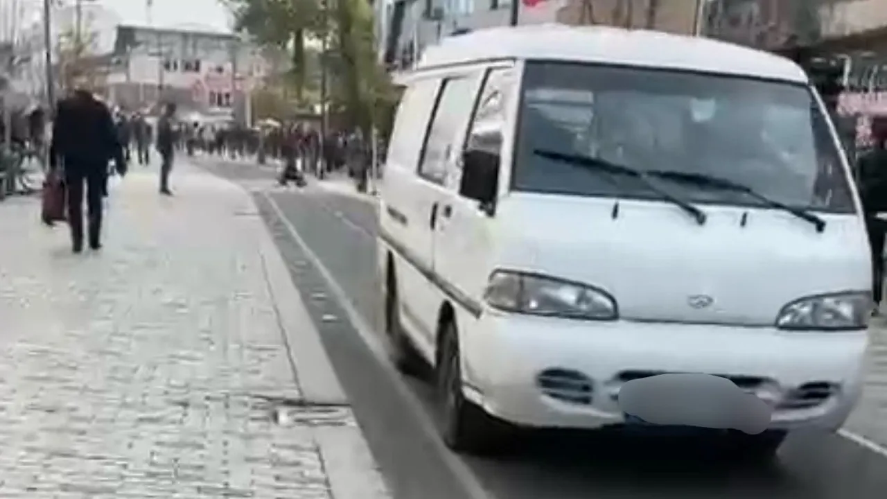 Görüntülere göre, sürücü kimseye aldırış etmeden, insanların yoğun olarak bulunduğu cadde boyunca minibüsle ilerledi.