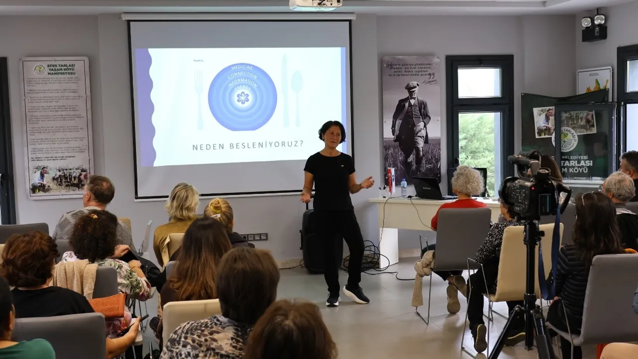 Efes Selçuk Belediyesi'nin ev sahipliğinde, Karaot Yerel Tohum Derneği iş birliği ile Prof. Dr. Nazan Uysal Harzadın'ın konuşmacı olarak katıldığı 'Temiz Gıdalarla Fonksiyonel Beslenme' söyleşisi, Efes Tarlası Yaşam Köyü'nde yoğun katılımla gerçekleşti.