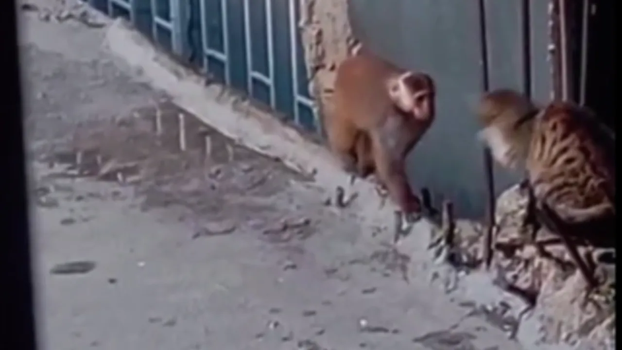 İstanbul'un Kadıköy ilçesinde iş yerinden kaçan ve çatı ile balkonlarda dolaşan rhesus makak, yetkililer tarafından yakalanarak koruma altına alındı.
