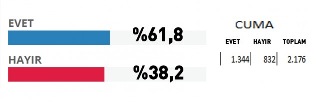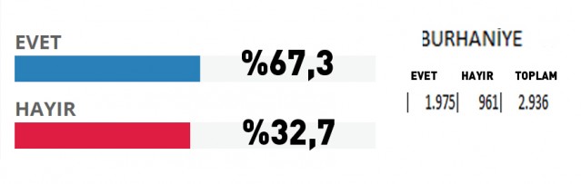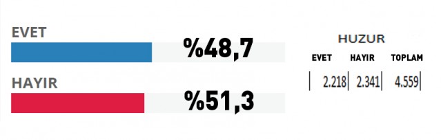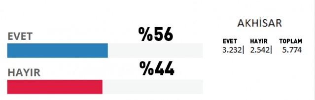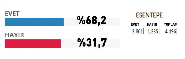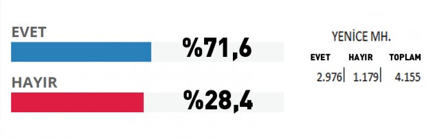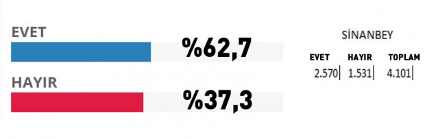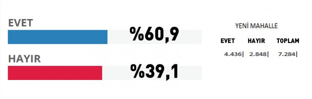 16 Nisan referandumunda inegöl'de merkez mahallelerinden çıkan sonuçlar şöyle;