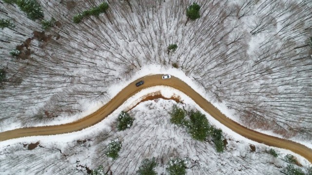 Türkiye'nin en önemli kayak ve kış turizm merkezlerinden Uludağ, kar yağışı sonrası beyaz örtüyle kaplandı. Kar yağışının ardından beyaza bürünen dağ yolu havadan görüntülendi.